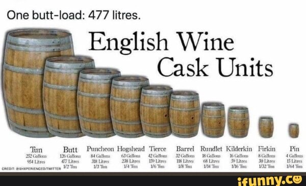 One Butt Load 477 Litres English Wine Cask Units Tun Butt Puncheon Hogshead Tierce Barrel Rundlet Kiklerkin Firkin Pin Acln Hagatlawe Gatas Gas Callas